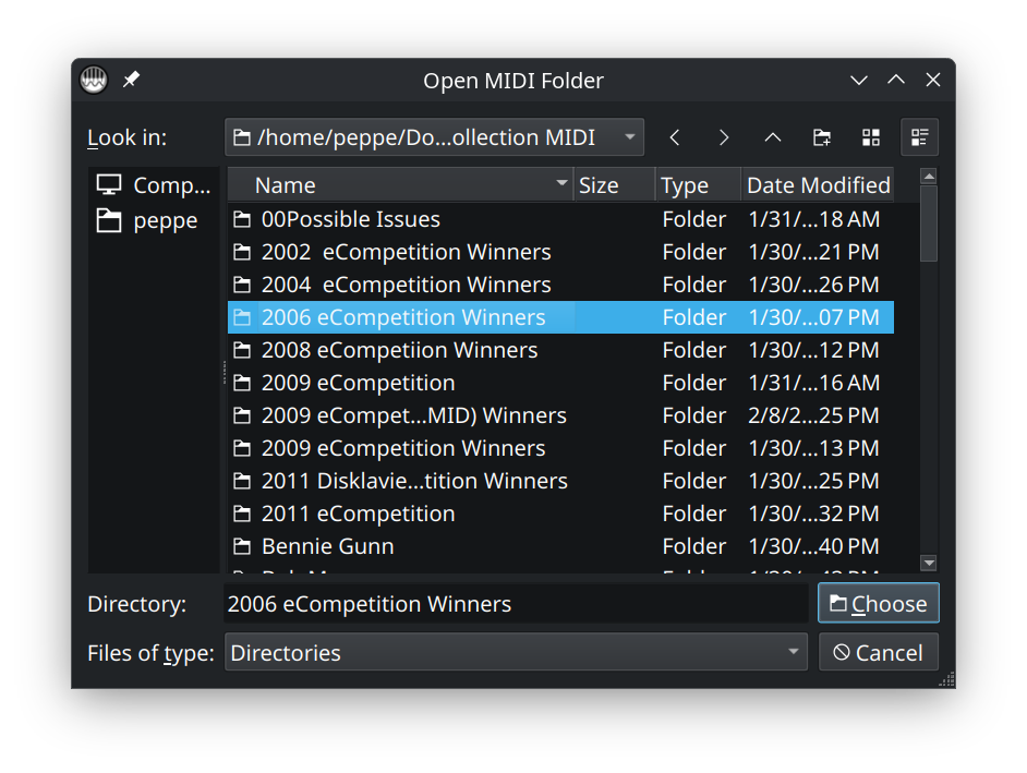 This is a good moment to look through the folder and make sure the program loaded the files you expected. If nothing appears, check that the folder contains files ending in .mid or .midi.