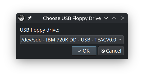 Choose the USB floppy drive from the list. If the tool sees the disk, it will begin reading it and then open the contents in Floppy Mode.