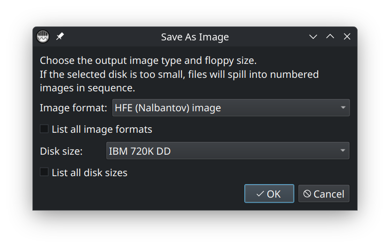 When choosing the output type, select HFE. This is the image format used by Nalbantov USB floppy emulator workflows.