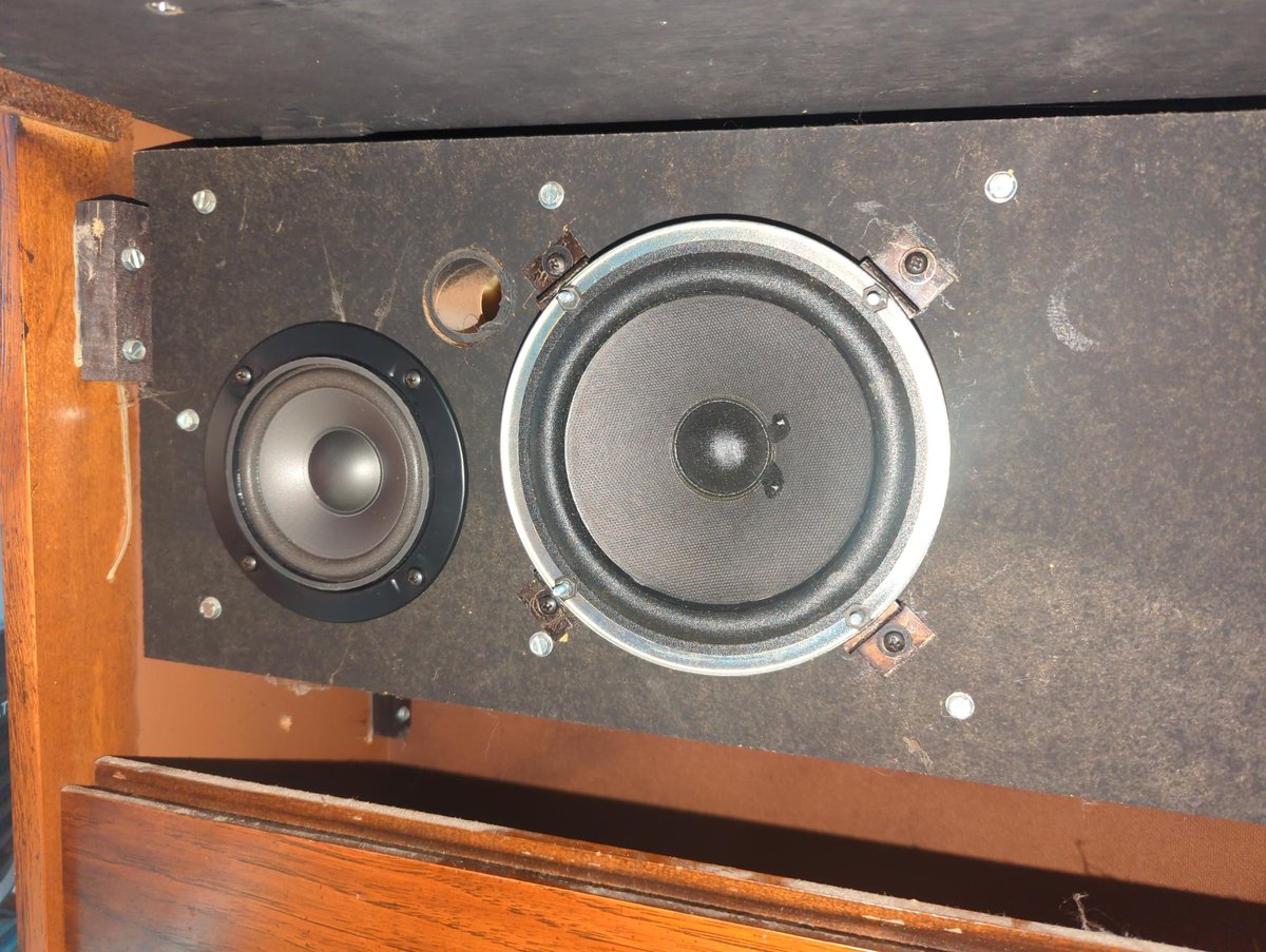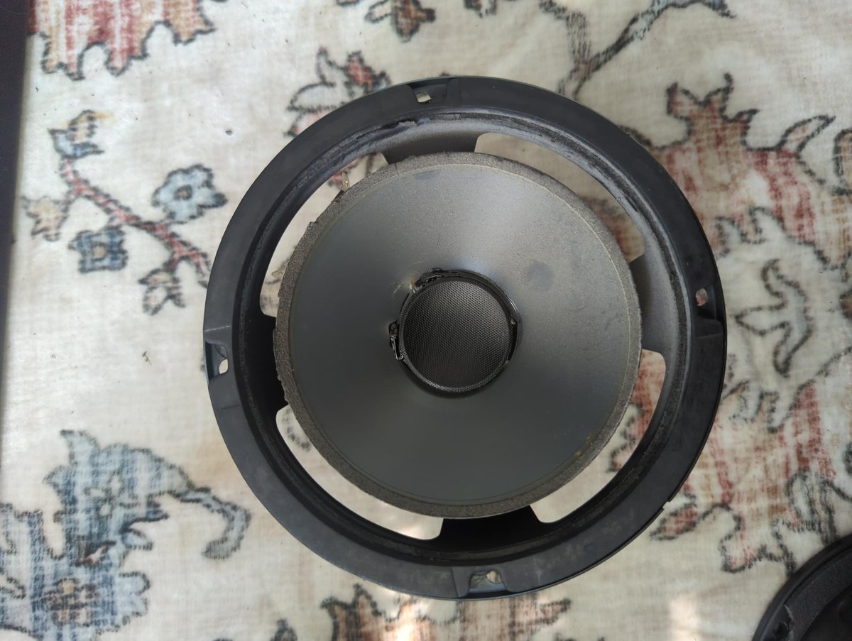 These are conventional 8 Ω speakers—just replace both pairs of speakers with speakers of the same size and equal or higher power rating. I clipped the ends of the wires and soldered them directly to the speakers.